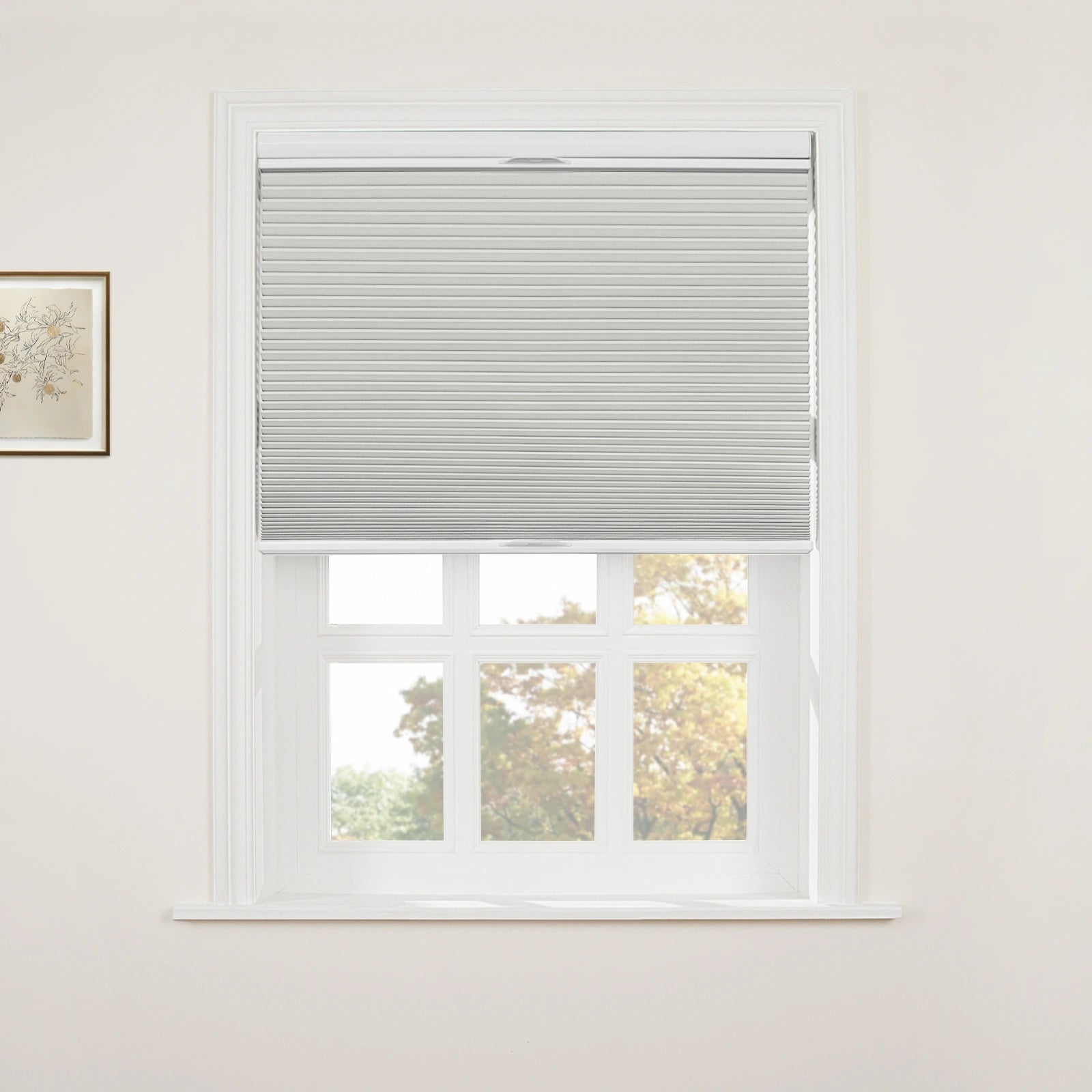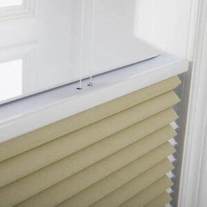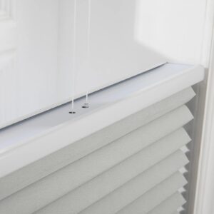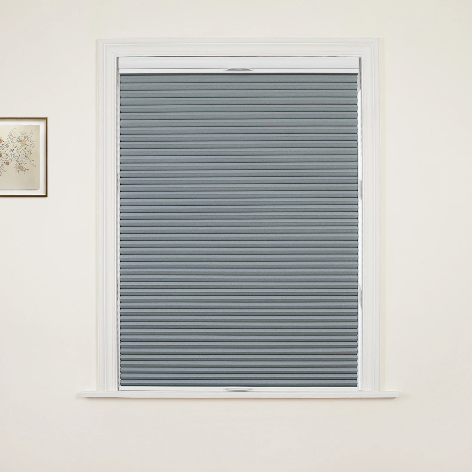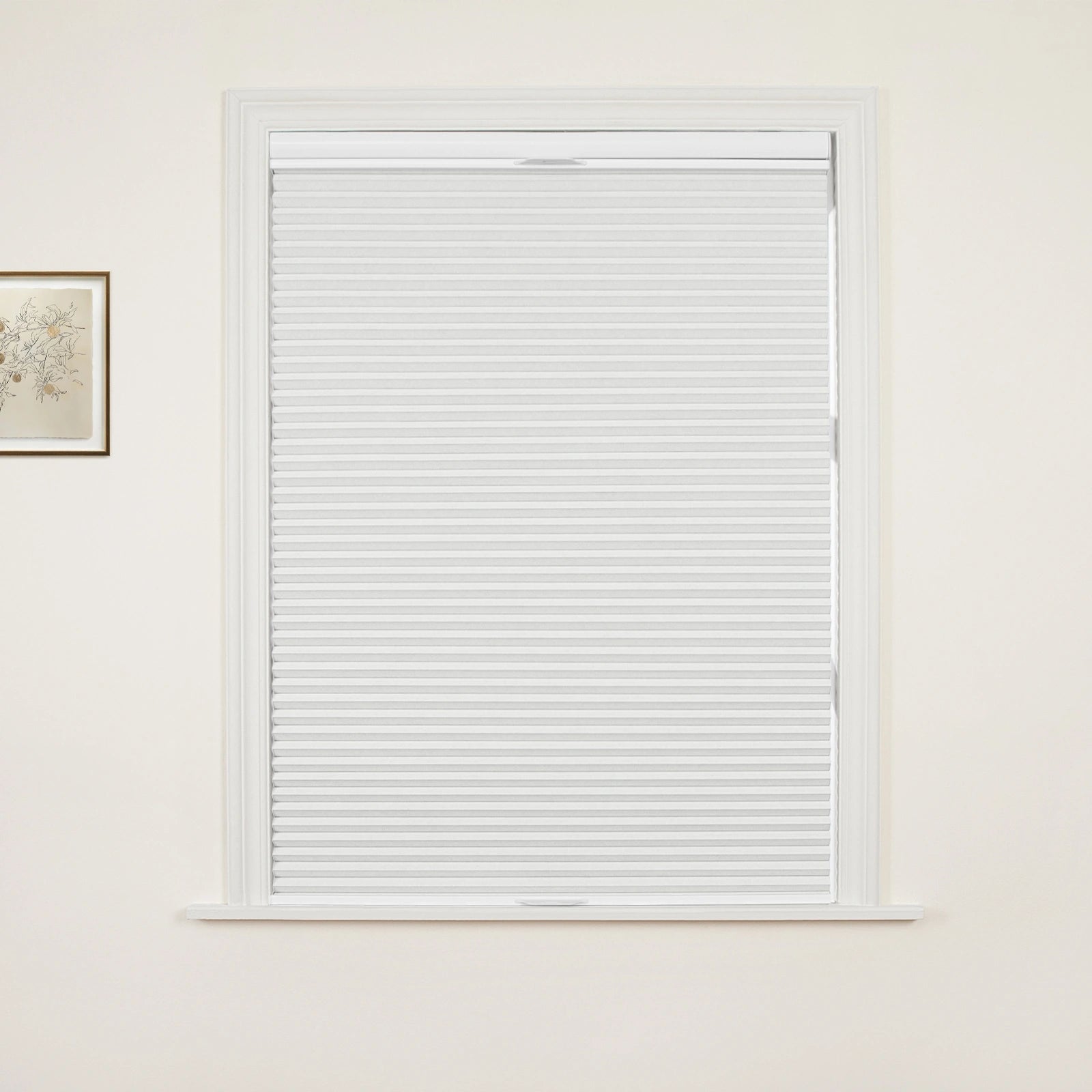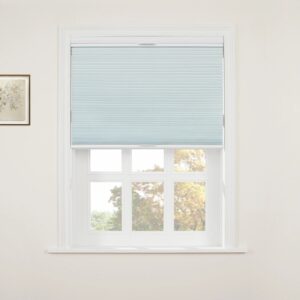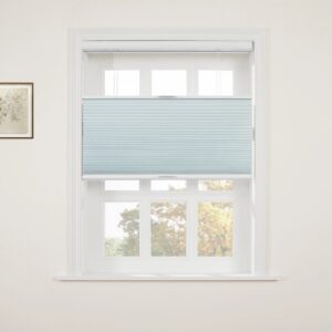 This product is a cordless cellular blind for interior window covering with top down and bottom up adjustment. It allows the blind to be positioned from the top or bottom to control light entry and privacy. The blind uses a honeycomb pleated fabric structure and a manual cordless lift system. The fabric is made of polyester with a weight of 225 g/m² and a pleat size of 2.54 cm. The headrail is made from aluminum alloy and requires a minimum mounting depth of 7 cm, or 6.35 cm for flush installation. This blind is suitable for use in living rooms, bedrooms, offices, and other indoor spaces to manage light, privacy, and window coverage.