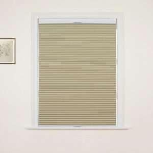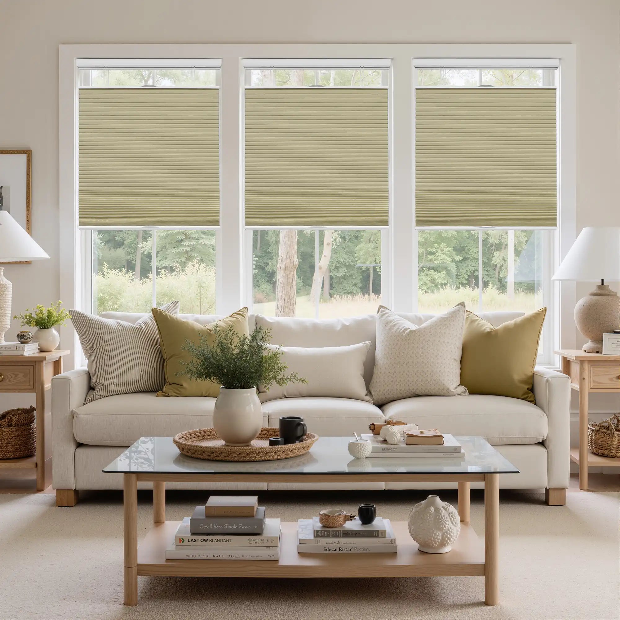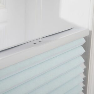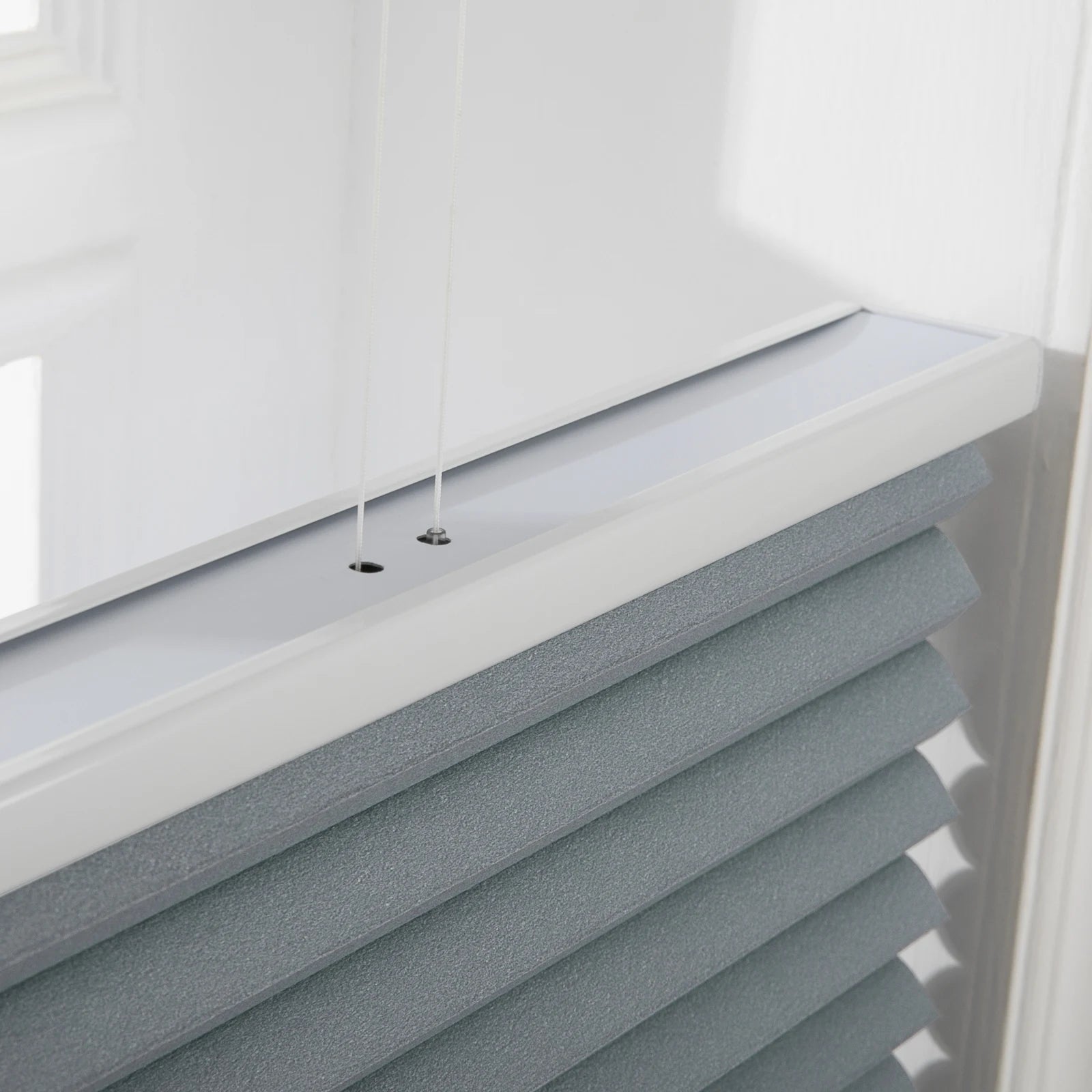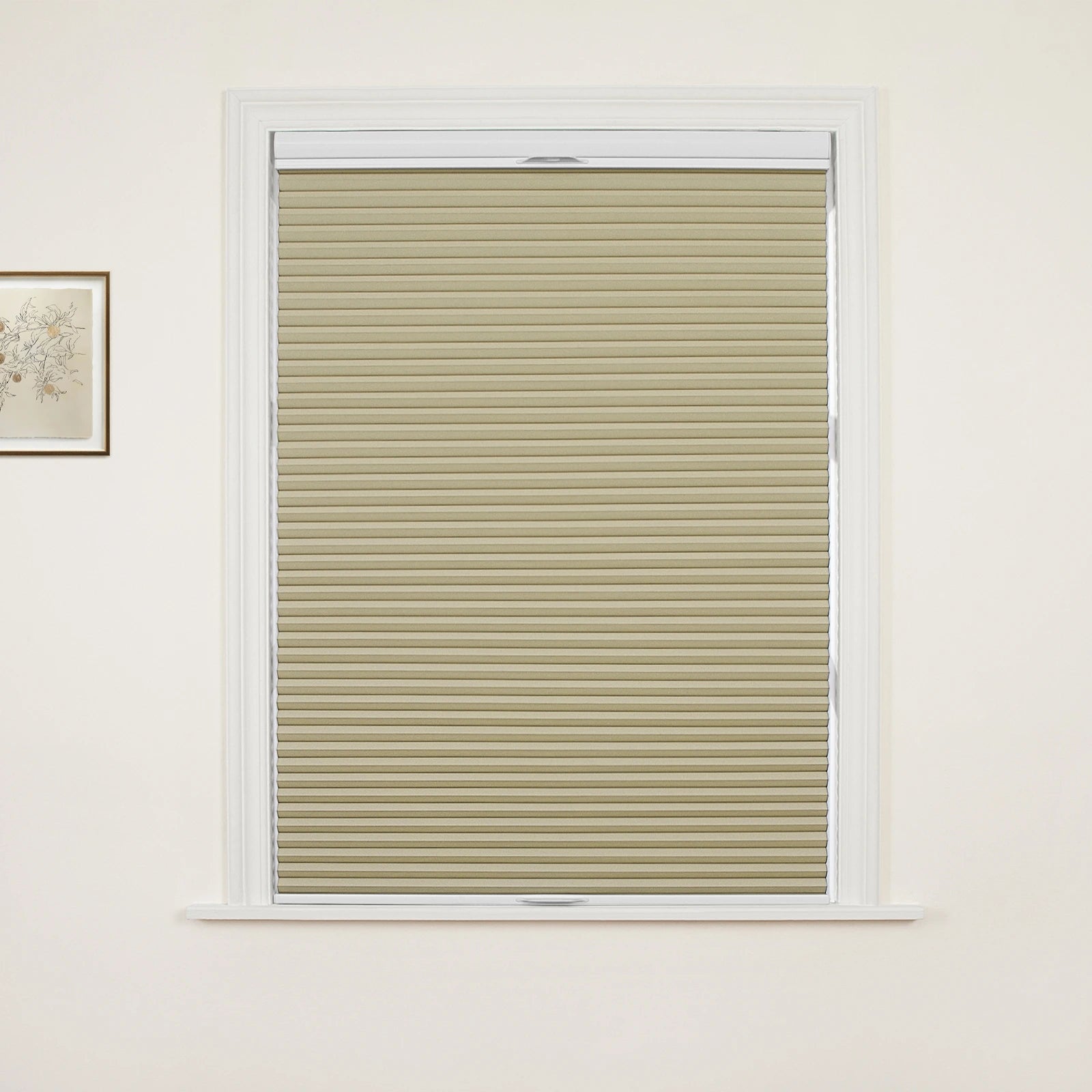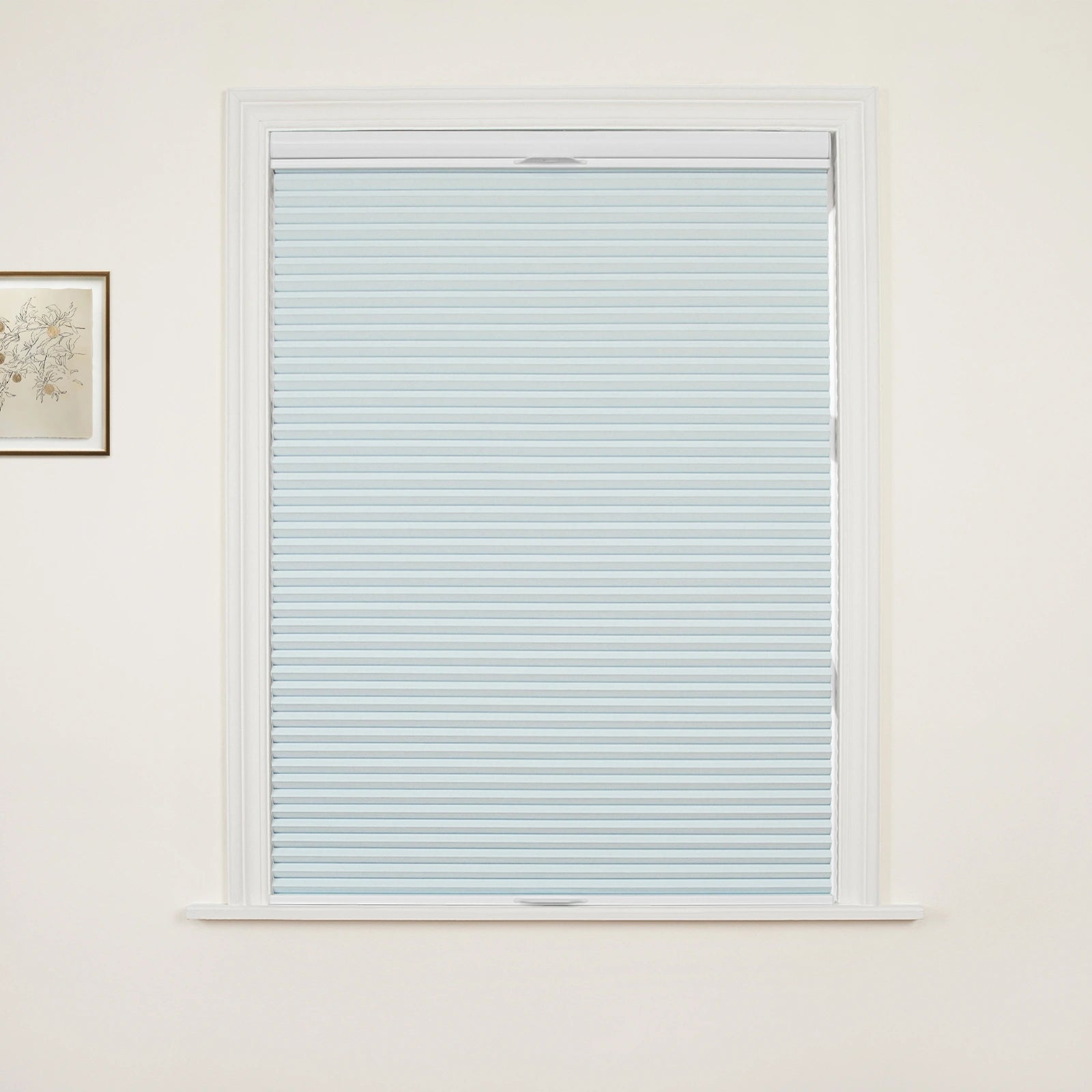 This product is a cordless cellular blind for interior window covering with top down and bottom up adjustment. It allows the blind to be positioned from the top or bottom to control light entry and privacy. The blind uses a honeycomb pleated fabric structure and a manual cordless lift system. The fabric is made of polyester with a weight of 225 g/m² and a pleat size of 2.54 cm. The headrail is made from aluminum alloy and requires a minimum mounting depth of 7 cm, or 6.35 cm for flush installation. This blind is suitable for use in living rooms, bedrooms, offices, and other indoor spaces to manage light, privacy, and window coverage.