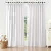 Leinenvorhang mit Blätterdruck und Faltenband ungefüttert