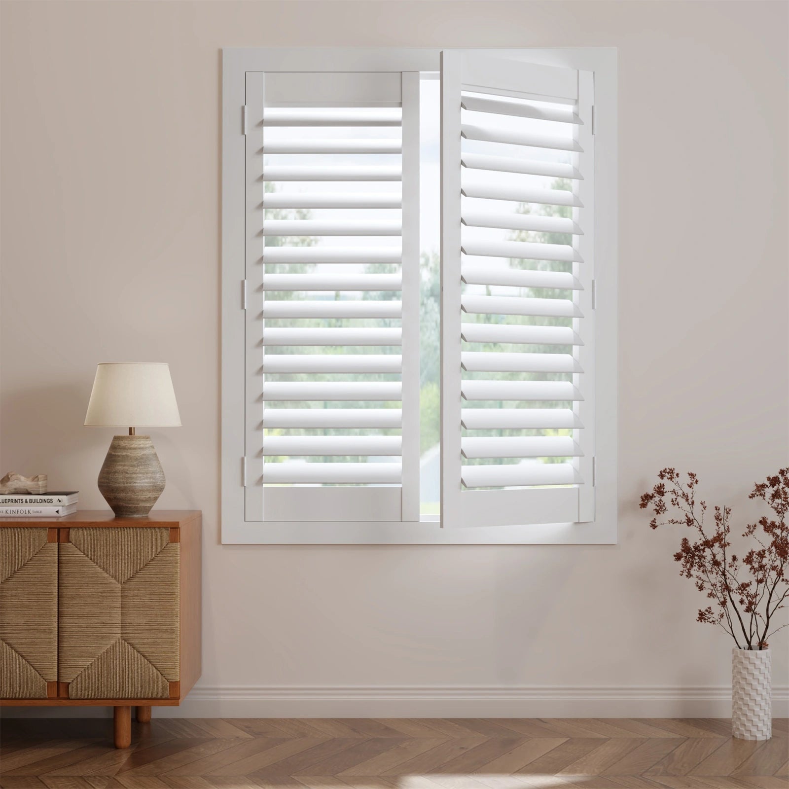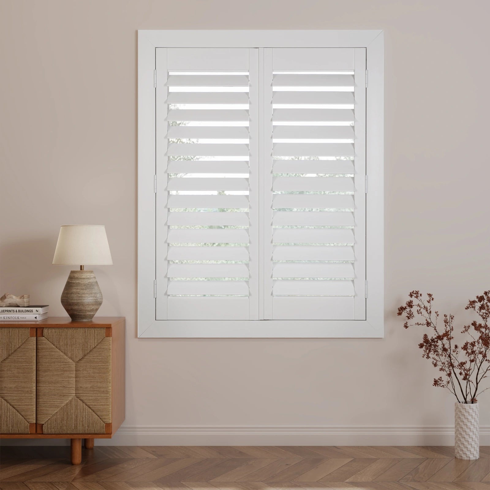 Innenfensterläden aus Hartholz mit verstellbaren Lamellen